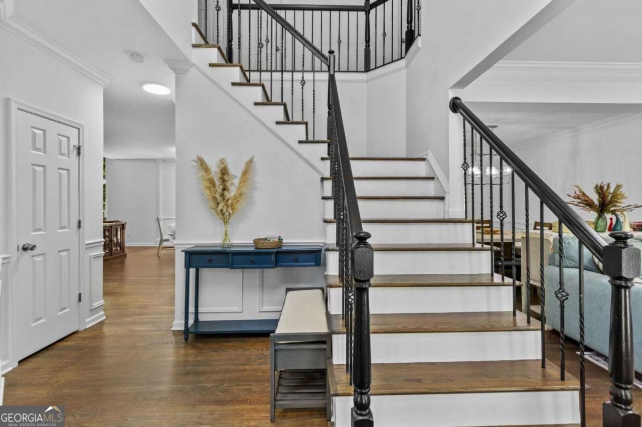 This beautifully updated home in the highly sought-after Morningview Subdivision truly has it all! Recent renovations include new engineered hardwood flooring throughout the main living areas and entire second level, fully updated bathrooms, fresh interior paint, a new kitchen range hood, and modern light fixtures throughout. As you enter, you're welcomed by a versatile office space on the left and a formal living room on the right, flowing seamlessly into the elegant dining room. The spacious kitchen features white cabinetry, granite countertops, and a large island, all overlooking the inviting family room. Adjacent to the kitchen is a bright breakfast area with serene backyard views-perfect for everyday living. The impressive family room boasts soaring ceilings, abundant windows, and plenty of natural light. Upstairs, the oversized primary suite offers a beautifully updated bathroom with a separate tub and shower. Three additional generously sized bedrooms provide ample space for family or guests. The fully finished basement adds incredible versatility, complete with a bedroom, full bathroom, and a living area-ideal for guests, in-laws, or extended living. The basement also provides direct access to the backyard. Situated on an exceptional 1.2-acre lot, this property offers your own private nature retreat. Enjoy peaceful outdoor living with a covered porch, open deck, covered patio, fenced yard, seasonal landscaping, private wooded trails, and a storage shed. The backyard extends to scenic Suwanee Creek, creating a truly tranquil setting. Located in the top-rated North Gwinnett High School district, the community also features outstanding amenities including a clubhouse, swimming pools, tennis and pickleball courts, fitness center, parks, sidewalks, and miles of walking trails. A rare opportunity to own a move-in ready home with space, upgrades, and nature-all in one!