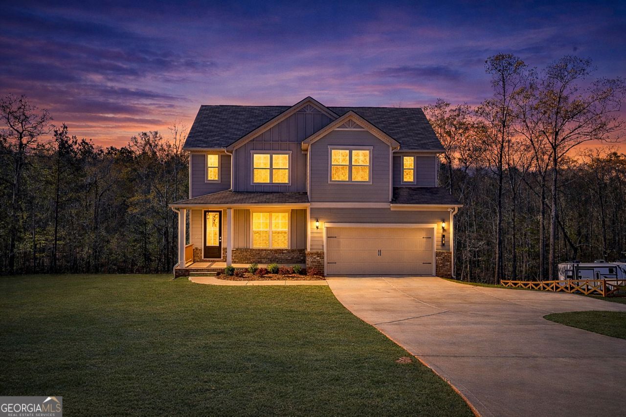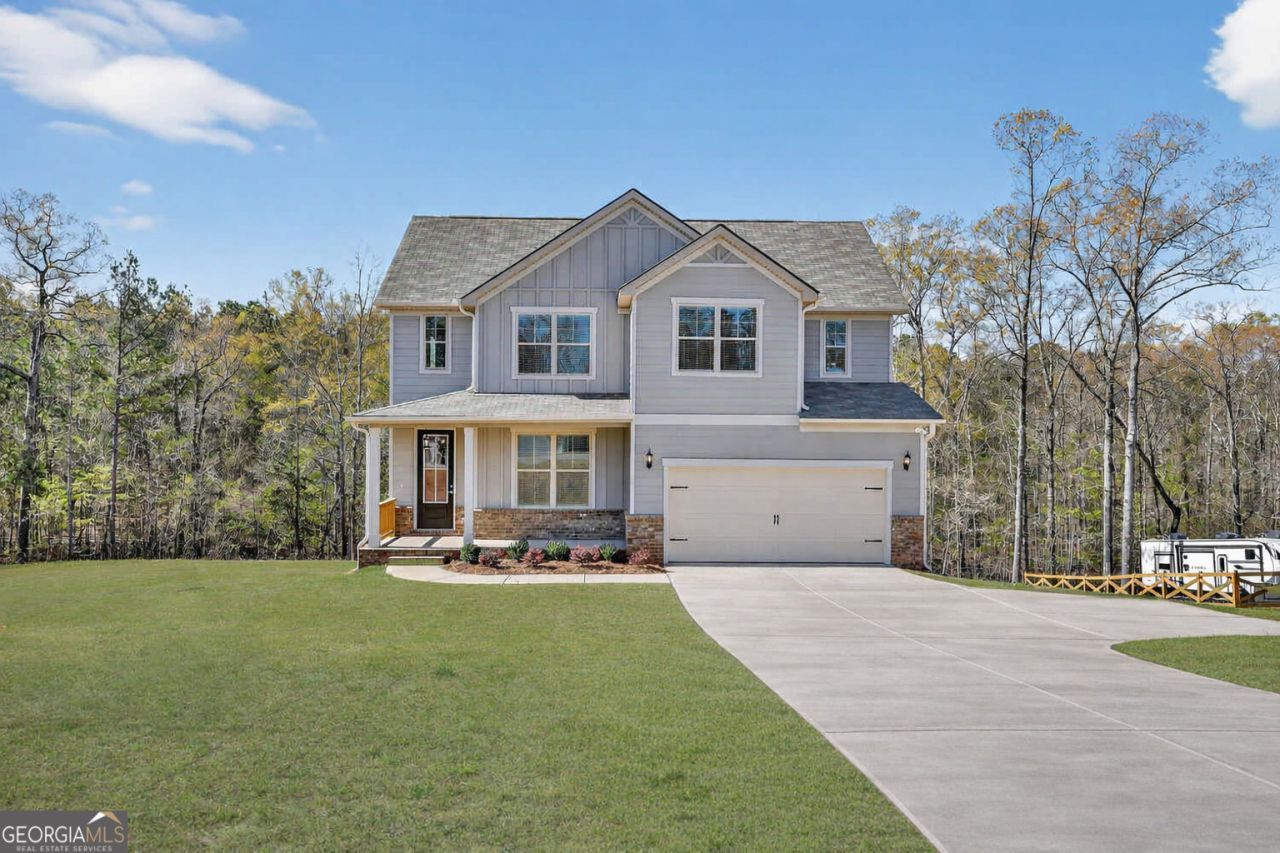 Peachwood C2 #55 - WOW!! For a LIMITED TIME - Up to $30K in FLEX CASH w/Pref. Lender. Discover 58 Cooper Dr - this stunning 2-Story Craftsman-style new construction home comes with a full unfinished basement features 4BR/2.5BA on approx. 1.32 acre homesite. This home welcomes you with a rocking chairs front porch, ideal for Georgia mornings. Inside, you'll find an open-concept living space designed for modern lifestyles. The gourmet kitchen features 42 cabinetry, granite countertops, tile backsplash, stainless steel appliances, a large entertaining island, and a double door pantry. The dining area flows seamlessly into the family room with a cozy fireplace and access to the rear deck. The main floor also showcase the Primary Suite, Flex Room and a convenient Powder room. Upstairs features an Open Loft area, three secondary bedrooms and bath with double sinks. Enjoy small-town living with easy access to big-city amenities. 100% financing, USDA loans and Down Payment Assistance options available, making this home ideal for both first-time homebuyers and those seeking more space. Call TODAY to schedule your private showing and experience the best of Mansfield, GA real estate.
