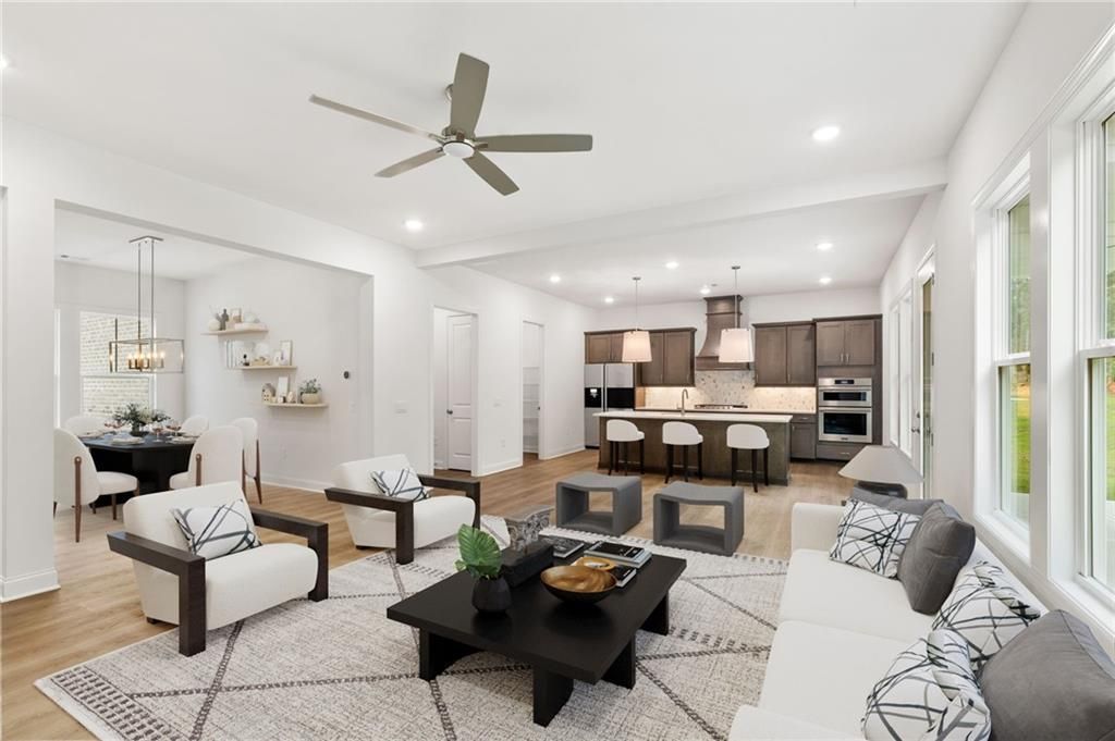 Windsong - Chatham plan - Ready April! Welcome home to an exclusive collection of 32 luxury homes by Windsong! This exceptional location in Cobb County offers convenient access to shopping, dining, award-winning schools, and recreational activities. This home has a Covered Porch for exceptional entertaining or relaxing, which opens to the kitchen and family room. Other Luxury features in this home include an oversized kitchen island with quartz countertops, 42-inch tall cabinets, and spacious walk-in pantries. The primary bedroom boasts tray ceilings and generously sized walk-in closets. The primary bathroom features a free-standing tub, comfort-height toilets, and quartz countertops. The secondary bathroom also features quartz countertops. Raised-height vanity cabinets and white rectangular undermount sinks add a touch of elegance. We've taken care of your lawn by installing irrigation for the entire yard! Experience the unmatched QUALITY and LUXURY you can always expect from Windsong! The price includes the seller's $17,000 flex cash, which is given to the buyer. You may use it any way you want, closing costs, rate buy-down, or off the price of the home as shown here. Buyers must use one of the seller's preferred lenders or pay cash to receive any incentive on this home. We are open 7 days a week to view all available homes or to build from the ground up. We love our agents and are extremely happy to partner with them. We pride ourselves on taking care of buyers and agents while providing the best home-buying experience possible. Come see how easy it is to purchase a Windsong Home!Agents must accompany buyers on the first visit or pre-register them prior to the initial visit if they are unable to attend.Some pictures were virtually staged with furniture.